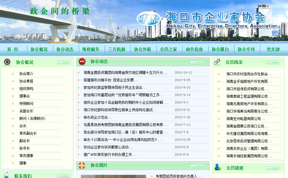 ??谑衅髽I(yè)家協(xié)會(huì)(下稱“協(xié)會(huì)”)是經(jīng)??谑惺形⑹姓嘘P(guān)部門同意,在市民政局登記注冊(cè),于2007年10月18日正式成立的具有獨(dú)立法人資格,目前是由海口市非國(guó)家機(jī)關(guān)的企業(yè)事業(yè)單位中具有較高思想文化素質(zhì)和一定經(jīng)營(yíng)管理經(jīng)驗(yàn)的主要負(fù)責(zé)人為主體,通過友好協(xié)商,自愿組成的非營(yíng)利性經(jīng)濟(jì)類唯一一家綜合性的社會(huì)團(tuán)體。