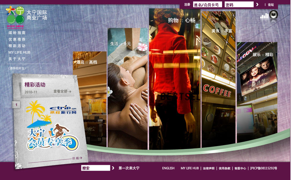 項目位于上海浦西南北中軸線 - 共和新路(南北高架) - 與大寧路交界。25萬平方米的總建筑面積由地面20萬平方米和地下5萬平方米組成。共有15棟錯落有致的建筑、11個大小廣場和庭院、約2公里步行街和1,300個停車位。商業(yè)廣場具有8大功能:商務(wù)酒店、辦公樓、零售、餐飲、文化、娛樂、教育和城市生活配套設(shè)施等。