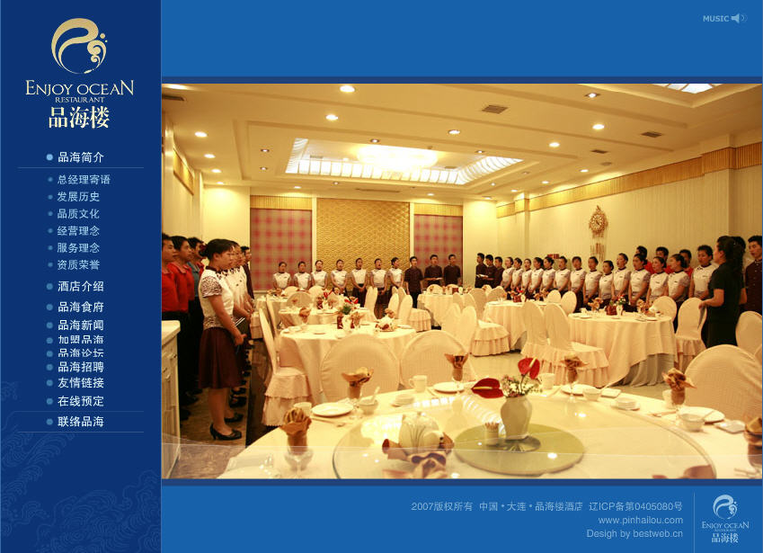 大連著名餐飲品牌酒店“品海樓”在十余年的經(jīng)營發(fā)展過程中,以經(jīng)營大連海鮮為主,另外新派粵菜和正宗川菜吸引著眾多的各界人士的追捧,經(jīng)營效益和人脈指數(shù)連年持續(xù)不斷的增長,2006年“品海樓”二部又成功開業(yè),開創(chuàng)了企業(yè)發(fā)展的新篇章...