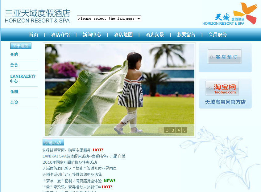 三亞天域度假酒店,位于風(fēng)景如畫(huà)的海南島三亞亞龍灣國(guó)家旅游度假區(qū),坐擁亞龍灣中心位置的最美麗海景。酒店一區(qū),1998年正式開(kāi)業(yè),全新二區(qū)亦于2006年閃亮登場(chǎng),至此,天域度假酒店成為擁有客房數(shù)量最多的熱帶風(fēng)情度假酒店。十年天域,碧水藍(lán)天,于細(xì)浪白沙間追逐嬉戲;十年天域,椰韻花語(yǔ),多少浪漫童話在此上演; 承蒙您的支持與關(guān)愛(ài),天域人在此謹(jǐn)表示最衷心的感謝.